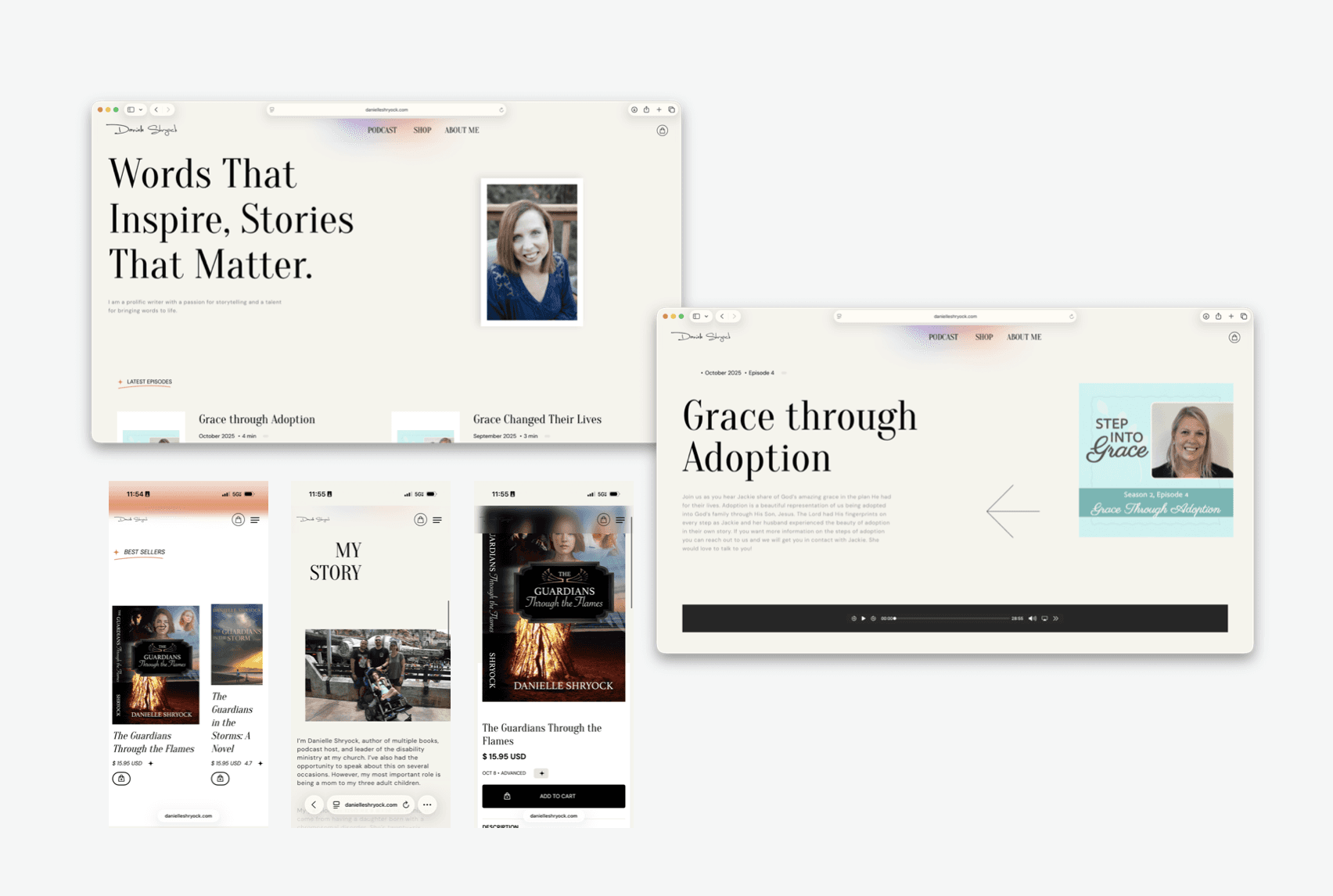 The work replaced a mismatched presentation with a cohesive system that supports Danielle’s genre, voice, and readers. With repeatable templates and clean deliverables, publishing felt simpler and more confident. Danielle now has a single, brand-aligned home base that helps readers discover the work, stay connected through the podcast, and purchase directly.